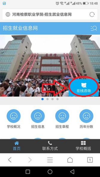 为了方便考生,我院招生就业办定制开发了网站在线咨询系统,用电脑或手机都可以方便使用,下面我给小伙伴们演示一下。